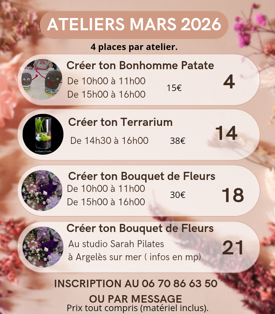 Places ultra-limités : seulement 4 par atelier (sauf demande spéciale pour groupes).